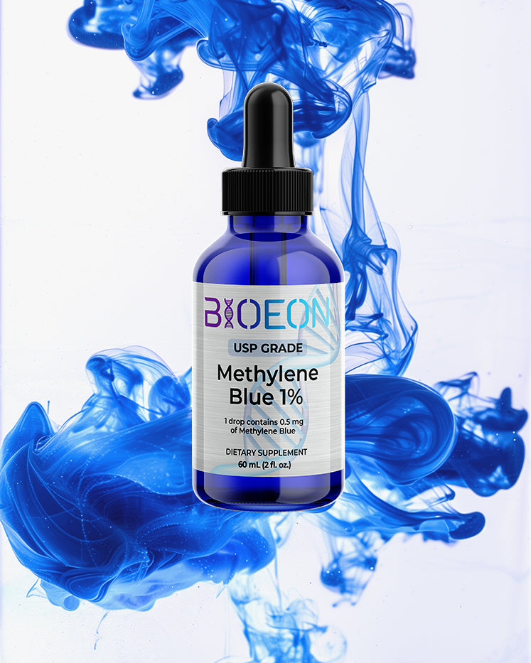Methylene Blue by BioEon is pharmaceutical-grade quality, third-party tested and made in California. This is real cellular optimization backed by decades of medical use and current longevity research — carefully formulated to be a star candidate in any anti-aging, recovery, or performance protocol.